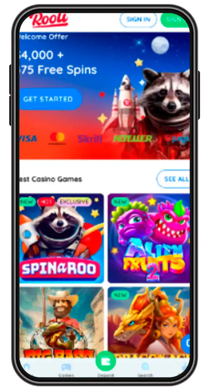 Rooli Casino, launched in 2024 by Dama N.V., is a vibrant, user-friendly online platform tailored for Australian players, featuring a sleek interface. The platform is known not only for its fun design but also for a generous welcome bonus of up to $4,000 + 475 FS for the first four deposits. Users choose it for the vast Live casino section and crypto games.
