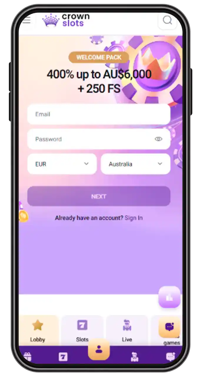 Crown Slots Casino is a luxurious, minimalistic online platform gaining traction in Australia in 2026, with a treasure trove of games and crypto-friendly features. It offers a welcome bonus of 400% deposit match up to AU$6,000 + 250 FS.